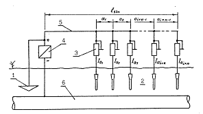 2- расределенное анодное заземление, установленное дополнительно в месте снижения защиты,